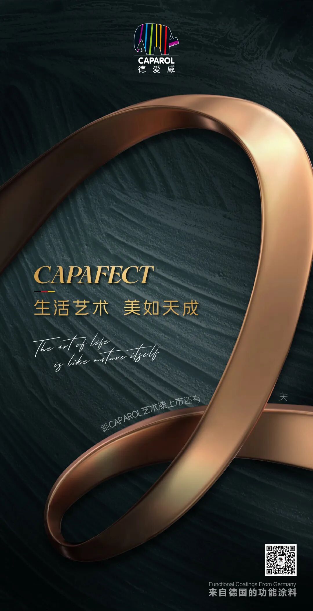 艺术之思想塑造了自然, 又从自然汲取灵感塑造了艺术, 并用它们来装点人们的生活。 艺术并不超越大自然, 不过会使大自然更美化。 ——塞万提斯 自然,是创造吸引的灵感来源; 艺术,是激发情感的灵魂共鸣。 简单生活中也可以蕴含无尽的美感。 一个理想的家, 不仅是承载着日常点滴的生活空间, 更能带给我们对美好艺术的感知。 如何把艺术融入家居设计, 用质感拉近与自然的距离, 用色彩表达人的思想, 是德爱威致力追求的全新话题。 6月10日 德爱威艺术漆系列臻美上市! 以精巧的质感细节, 为现代人打造一个斑斓的美学空间。 美好无处不在, 艺术向美而生。 源自德国纯正品质, 德爱威, 让艺术跃动在家的每个角落。