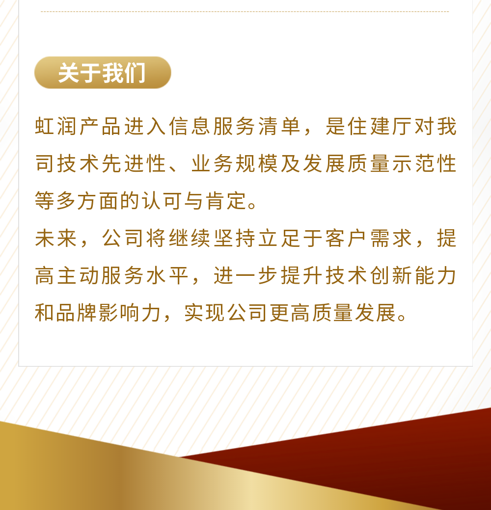 虹润产品成功入选四川省住房和城乡建设厅2022年度第一批“信息服务清单(成果类)”