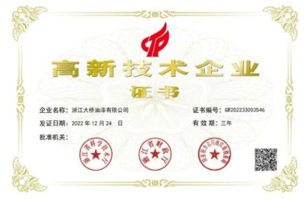 展商动态 | 大桥油漆再获国家级高新技术企业