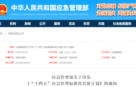 十四五丨应急管理部出台“十四五”应急管理标准化发展计划