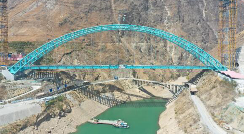 近日,由四川路桥交建集团承建的大河坝特大桥格子梁顺利合龙,标志着全线跨径最大、桥长最长的中承式钢管拱桥顺利完成钢结构施工。