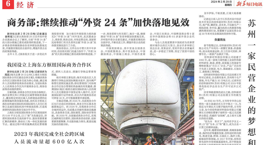 记者近日深入位于江苏苏州吴中经济技术开发区的信和新材料(苏州)有限公司,观产线、聊研发、话未来,不仅被生产一线抢进度、争开局、赢先机的火热景象和饱满热情深深打动,更震撼于这家民营企业近30年来对实业报国的坚持和守望。