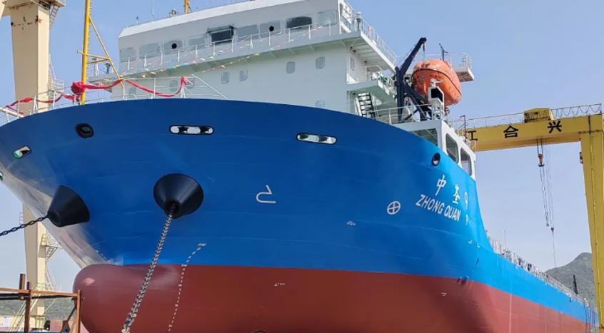 2025年4月14日,舟山市中荃海运有限公司旗下一艘长达 128 米的无限航区甲板船 ——“中荃 9” 轮,在浙江合兴船业有限公司顺利吉水,正式驶向广阔海洋,开启了乘风破浪的新征程。